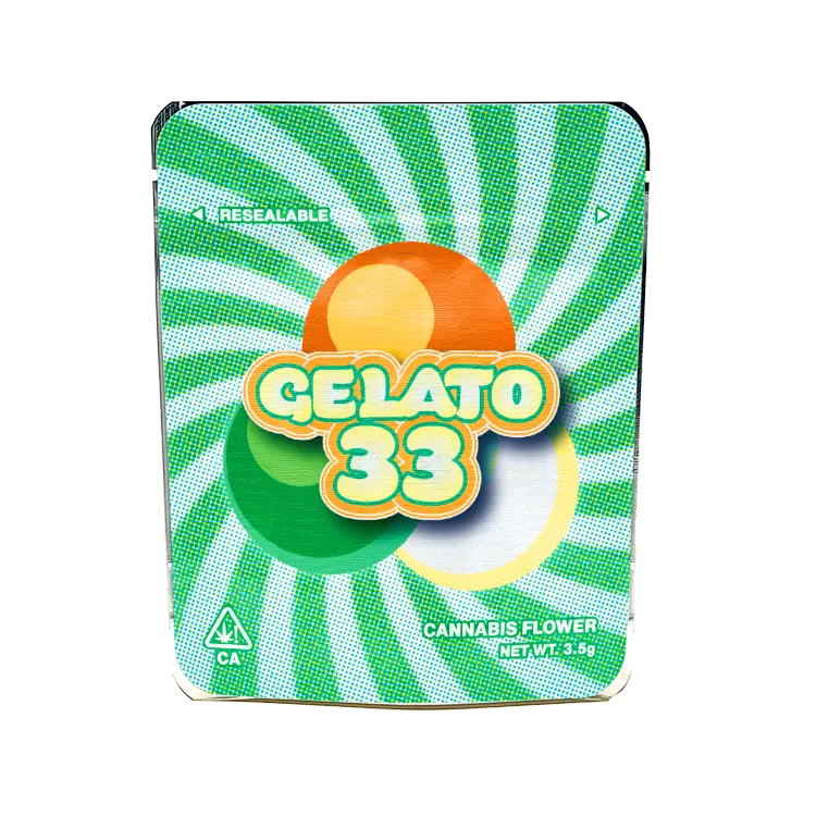 • Labelled or Unlabelled Gelato 33 Strain Mylar Pouches.