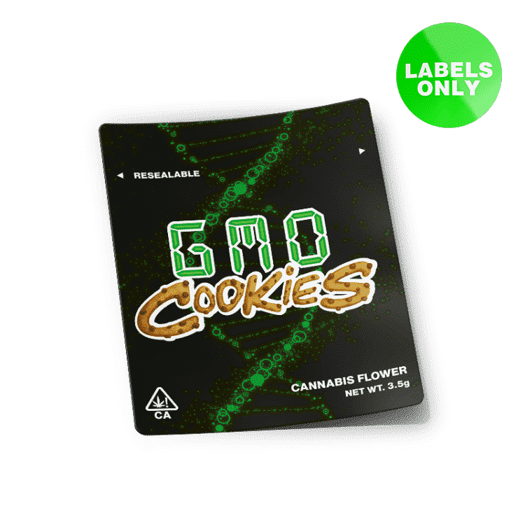 GMO Cookies Mylar Bag Labels.