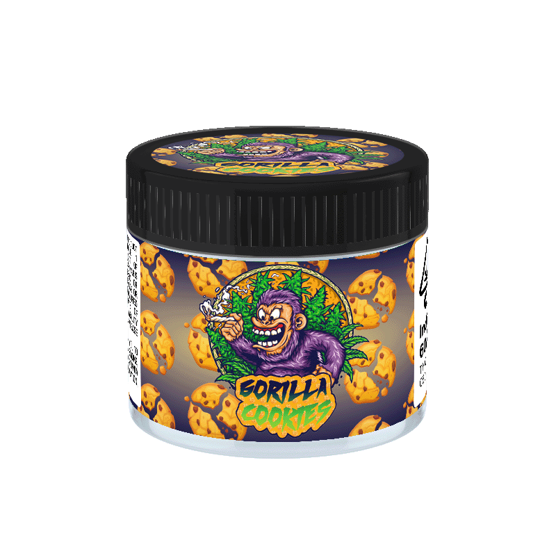 Labelled 3.5g Gorilla Cookies Glass Jars – This option ships Ready Made Gorilla Cookies 60ml labelled Cali Jars – ready to use upon arrival.