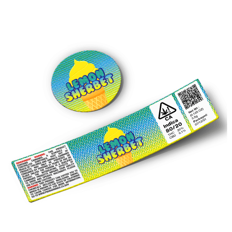 Whether it’s Lemon Sherbet 60ml/3.5g Glass Jar Labels, or any other strain of Glass Jar Stickers – be sure to work with professionals to give your brand that extra edge.