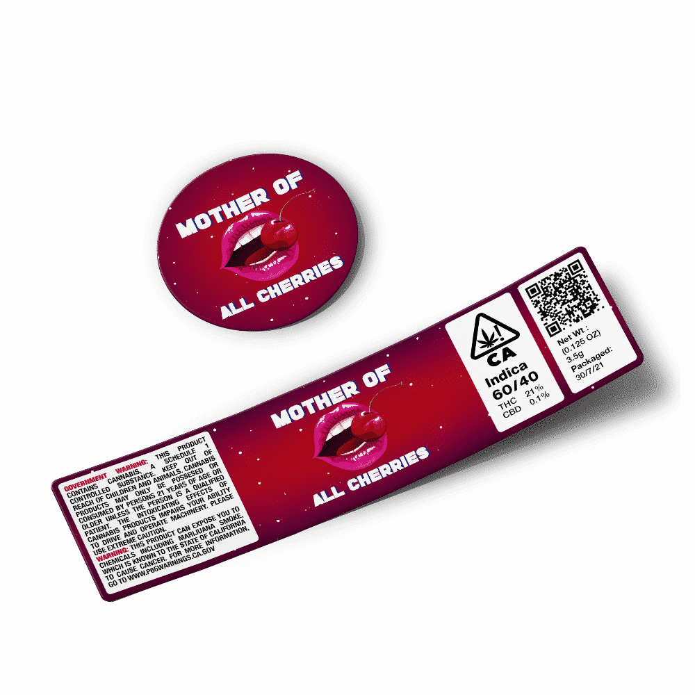 Whether it’s Mother of All Cherries 60ml/3.5g Glass Jar Labels, or any other strain of Glass Jar Stickers – be sure to work with professionals to give your brand that extra edge.