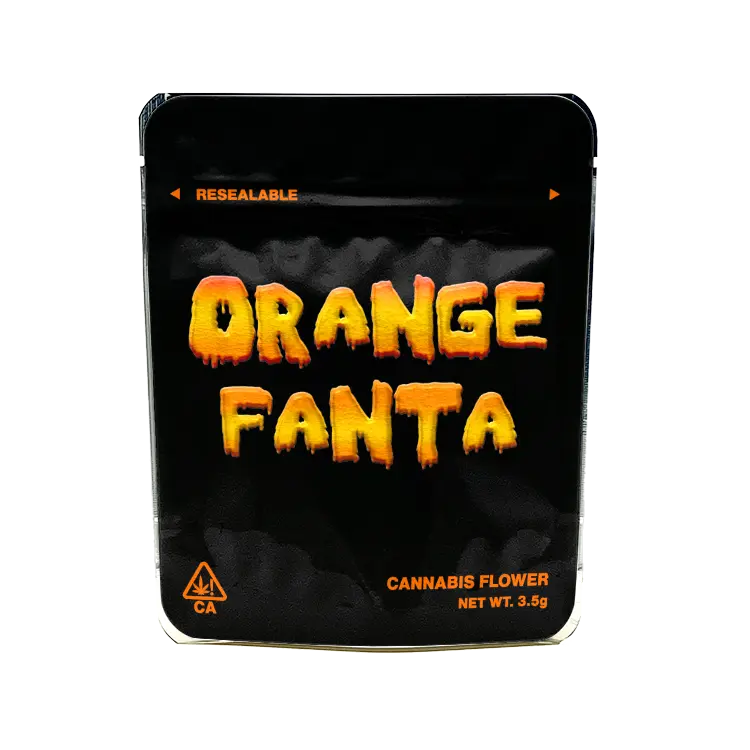 Labelled Orange Fanta Mylar Bags – This option ships Ready Made Orange Fanta Strain labelled Cali Packs – ready to use upon arrival.