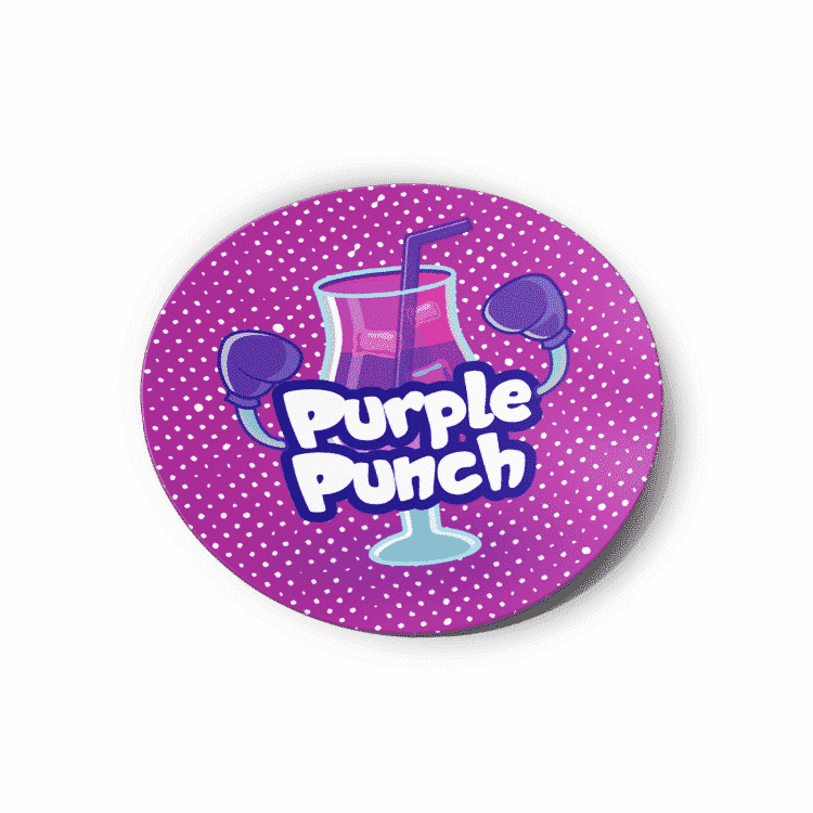 Our Purple Punch Strain Stickers are ideal as Pop Top Stickers, Mylar Bag Labels, Slap Stickers or as giveaways. This product option supplies Stickers Only.