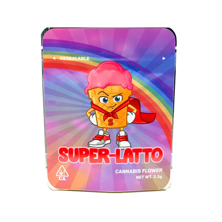 Labelled Super Latto Mylar Bags – This option ships Ready Made Super Latto Strain labelled Cali Packs – ready to use upon arrival.