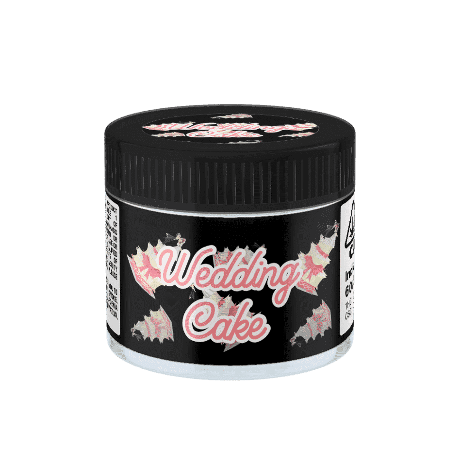 Labelled 3.5g Wedding Cake Glass Jars – This option ships Ready Made Wedding Cake 60ml labelled Cali Jars – ready to use upon arrival.